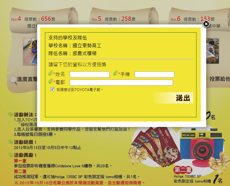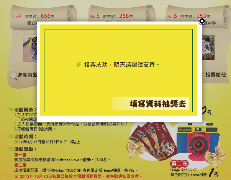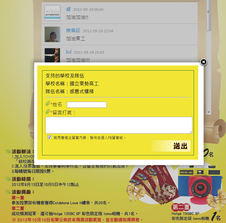 專案名稱 - 社群FB活動 - 2012 TOYOTA 綠校園改造王預測投票活動